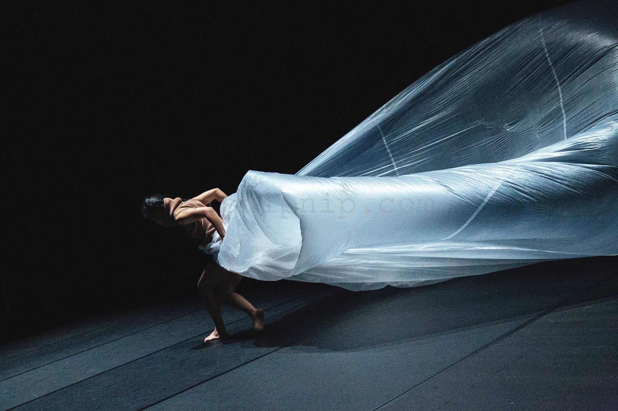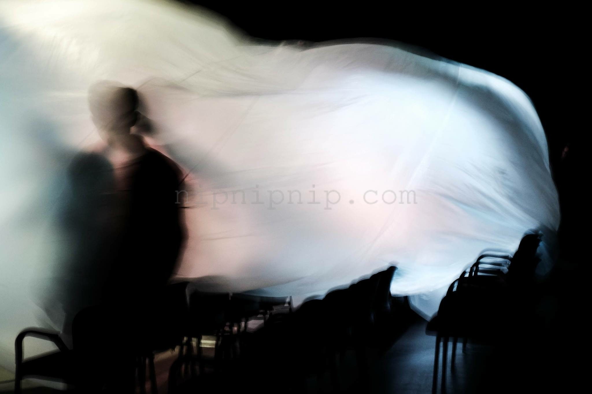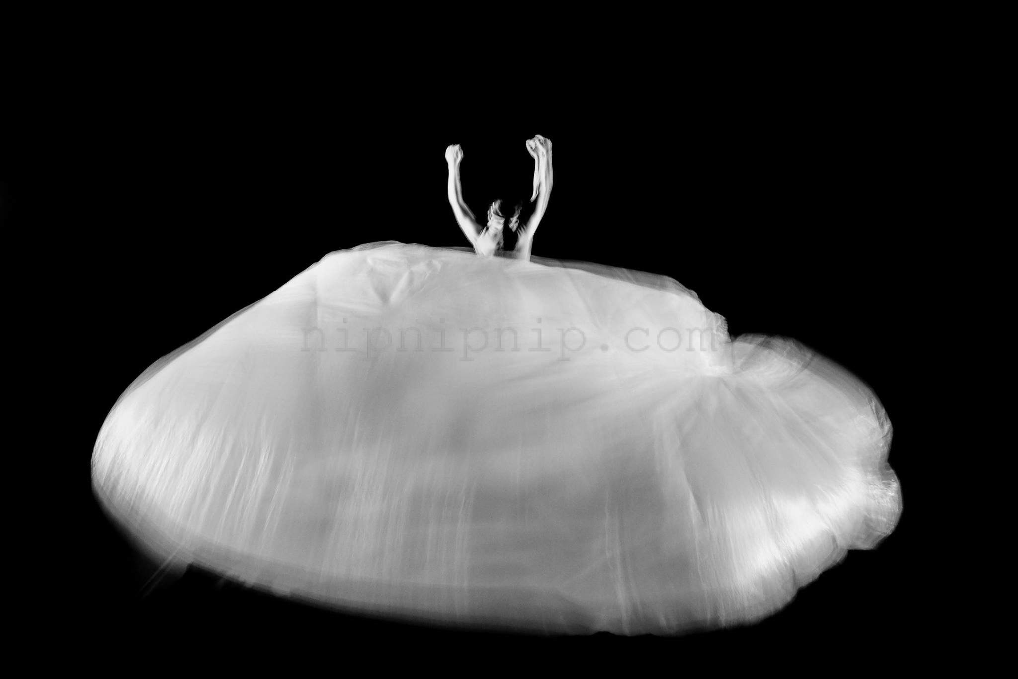 A piece of white is floating in the air