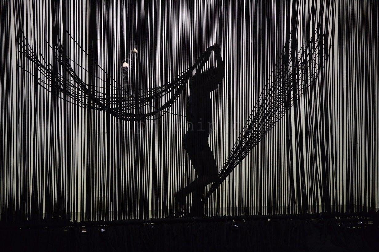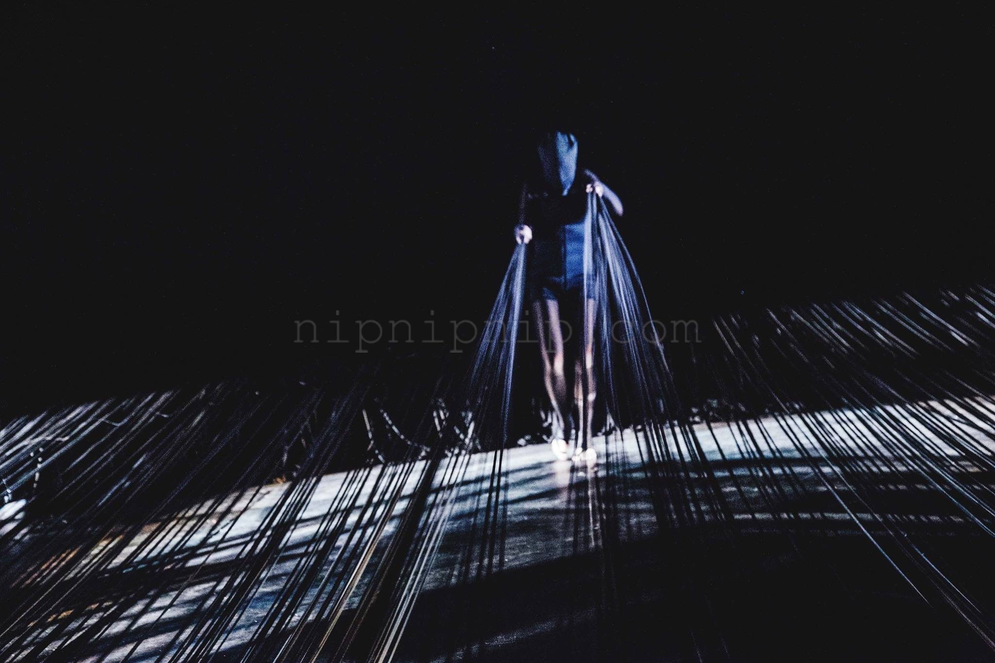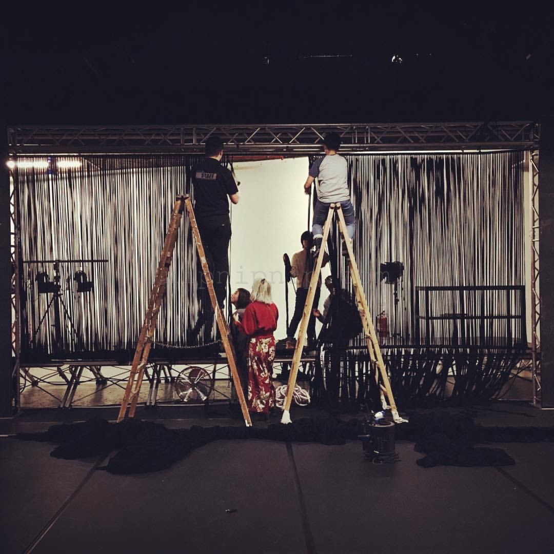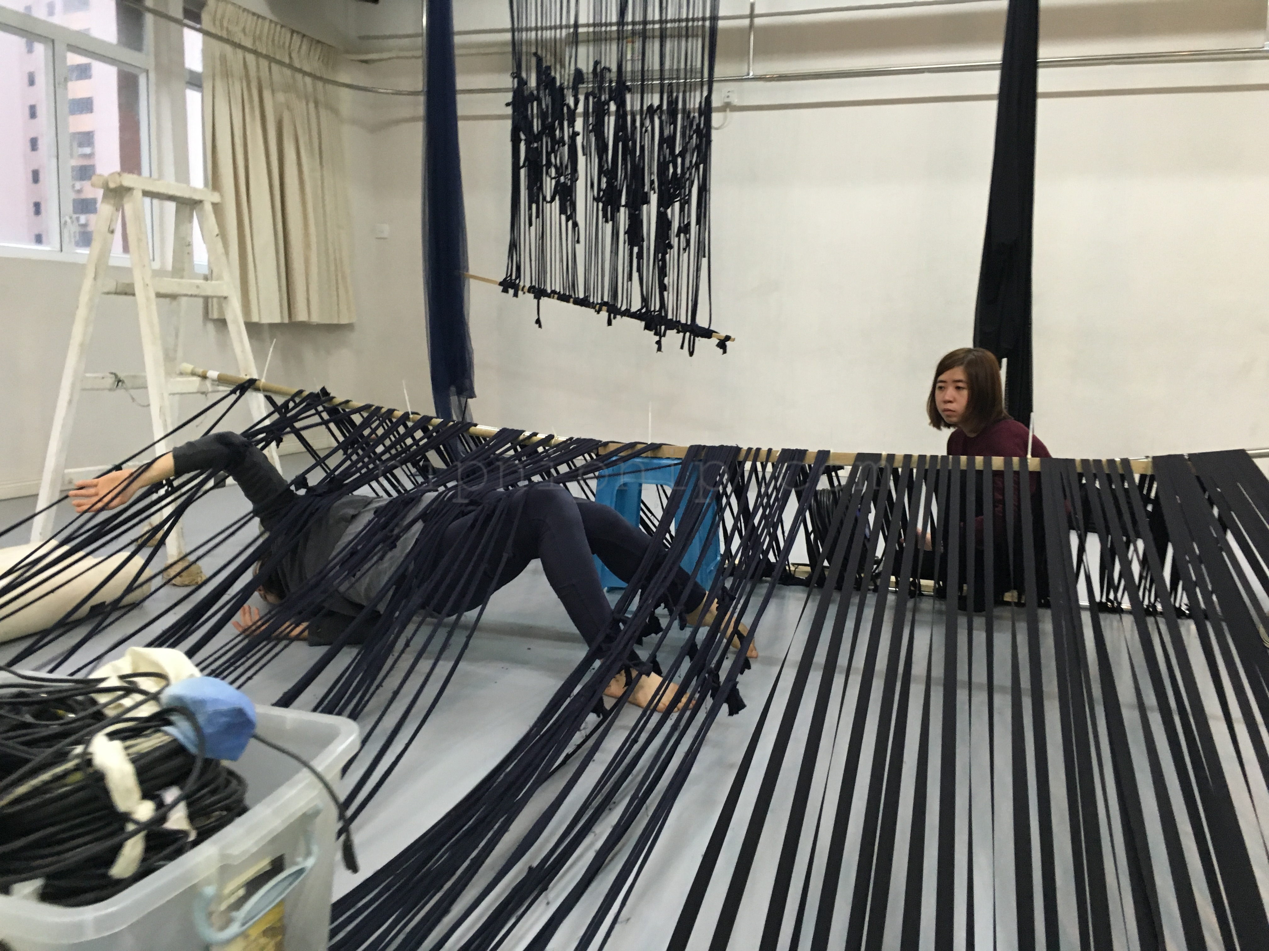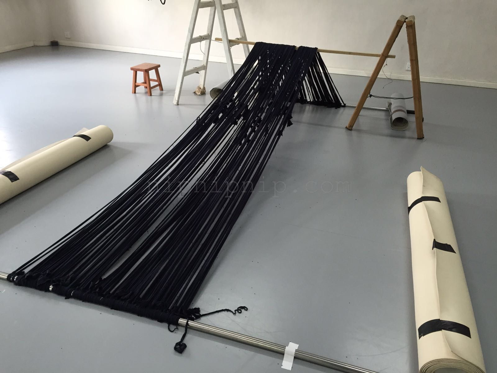 Space carries all the scenery the presentation of the fabric is not its subject After it is deconstructed there are some warp and weft interweaving I drew the space in one direction The other direction is left for the body and the audience to interweave with it We construct one after another familiar artificial landscapes