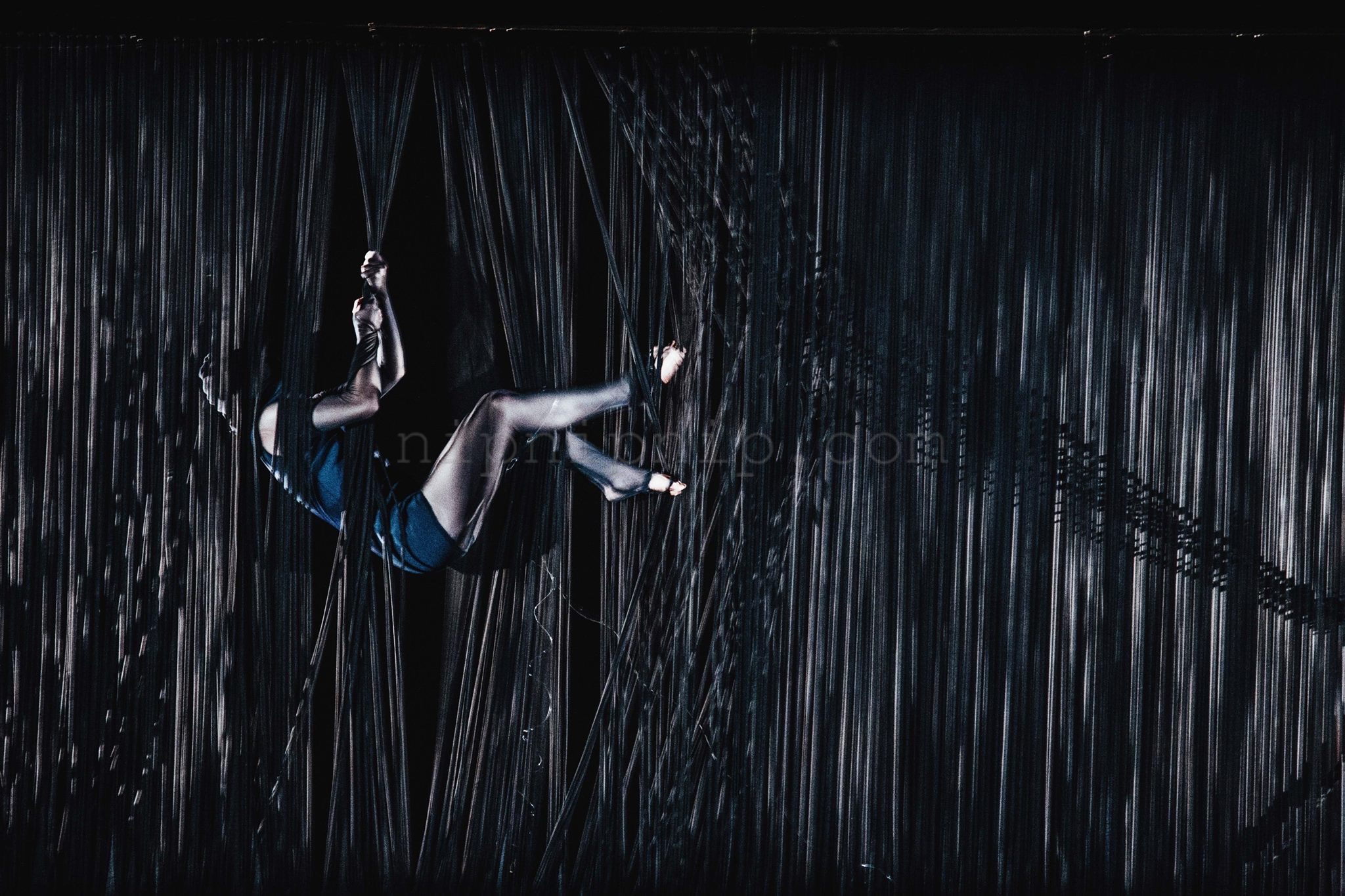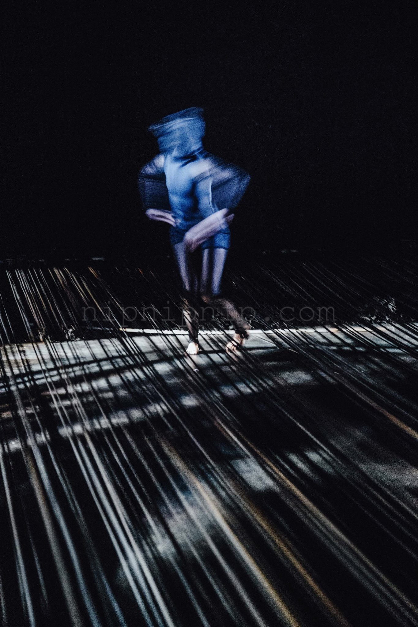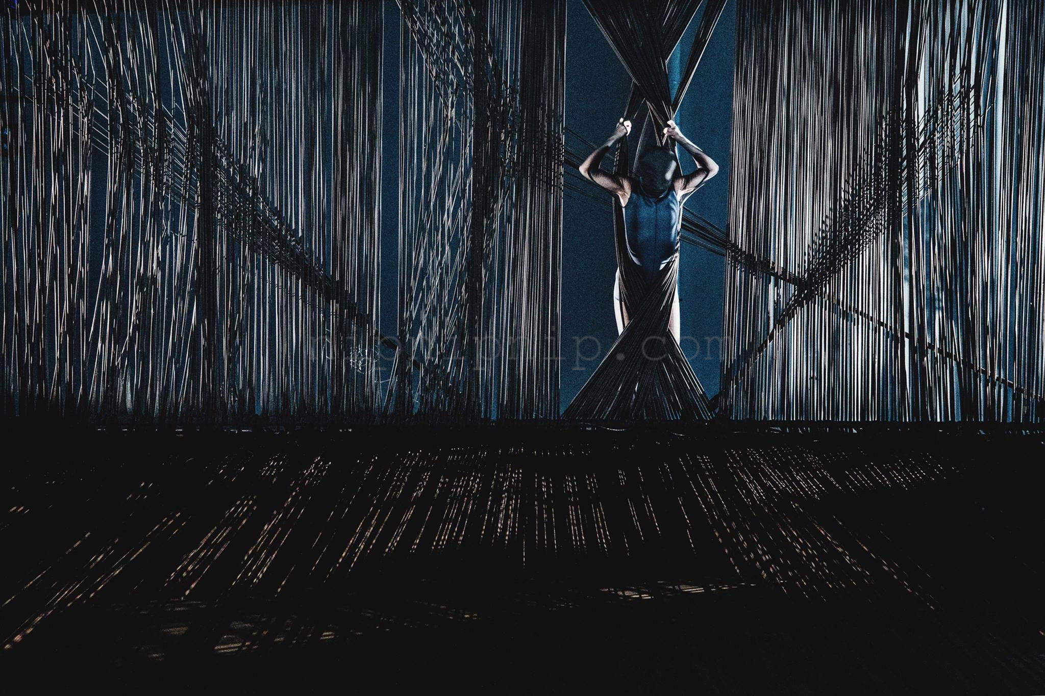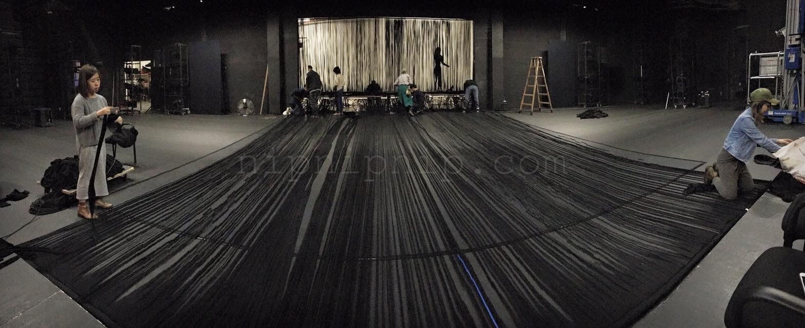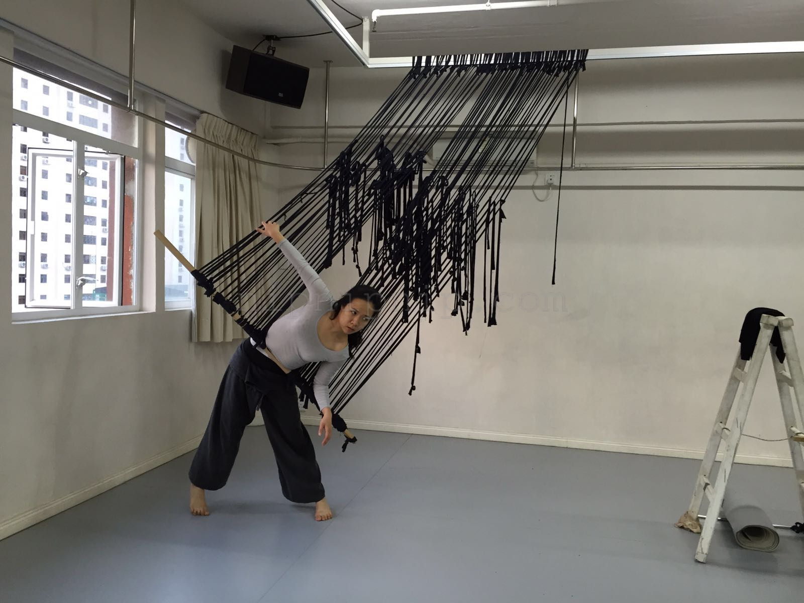 Space carries all the scenery the presentation of the fabric is not its subject After it is deconstructed there are some warp and weft interweaving I drew the space in one direction The other direction is left for the body and the audience to interweave with it We construct one after another familiar artificial landscapes